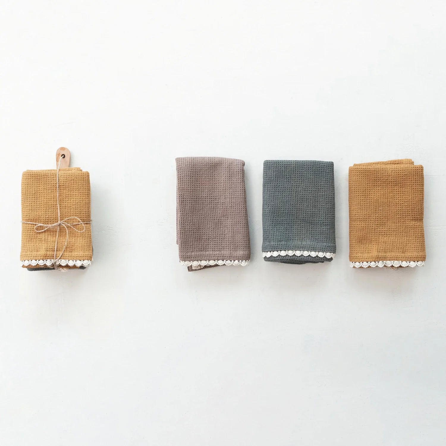 Set of 3 Waffle Weave Towels w/ Mango Wood Cutting Board -